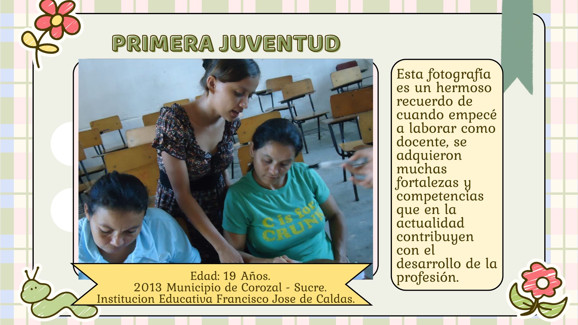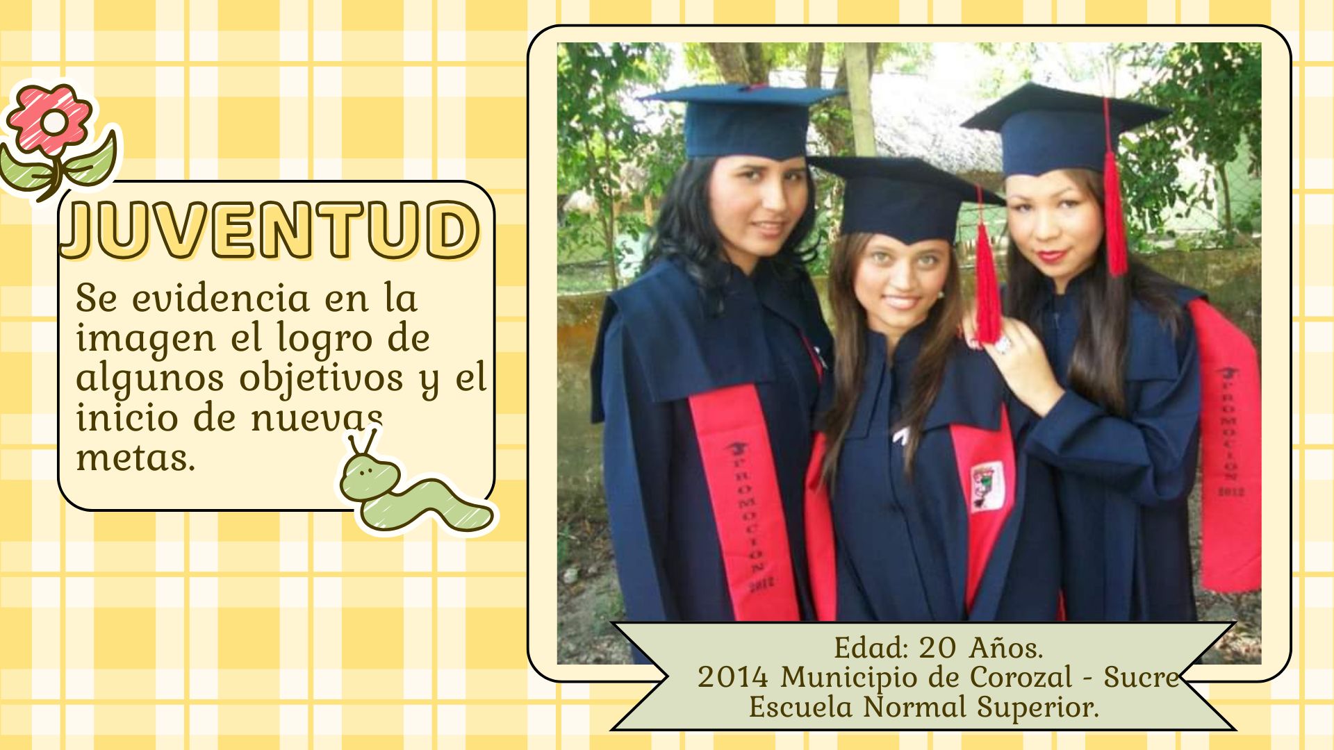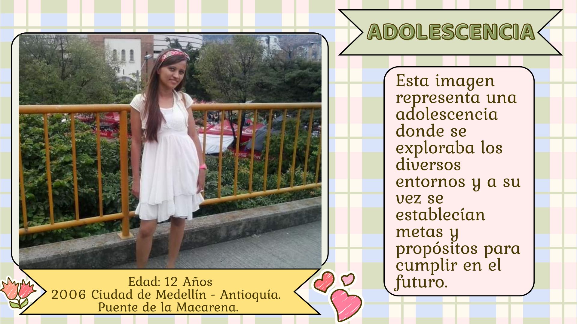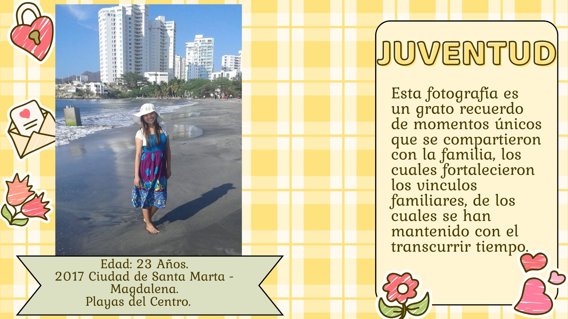 Como se evidencia en las fotografías, todos estos momentos que he vivido con el transcurrir de los años, han configurado mi identidad, debido a que, las diferentes instituciones como familia, escuela y sociedad permitieron contextualizar mis categorías como individuo, sujeto y ciudadana; de igual forma me ayudo en esa construcción cultural, dando forma a la subjetividad de cada uno de ellos. Como lo menciona (Cicerchia, 1999), "La familia es ese intermediario entre la sociedad, las instituciones y el cambio social". (p. 49).