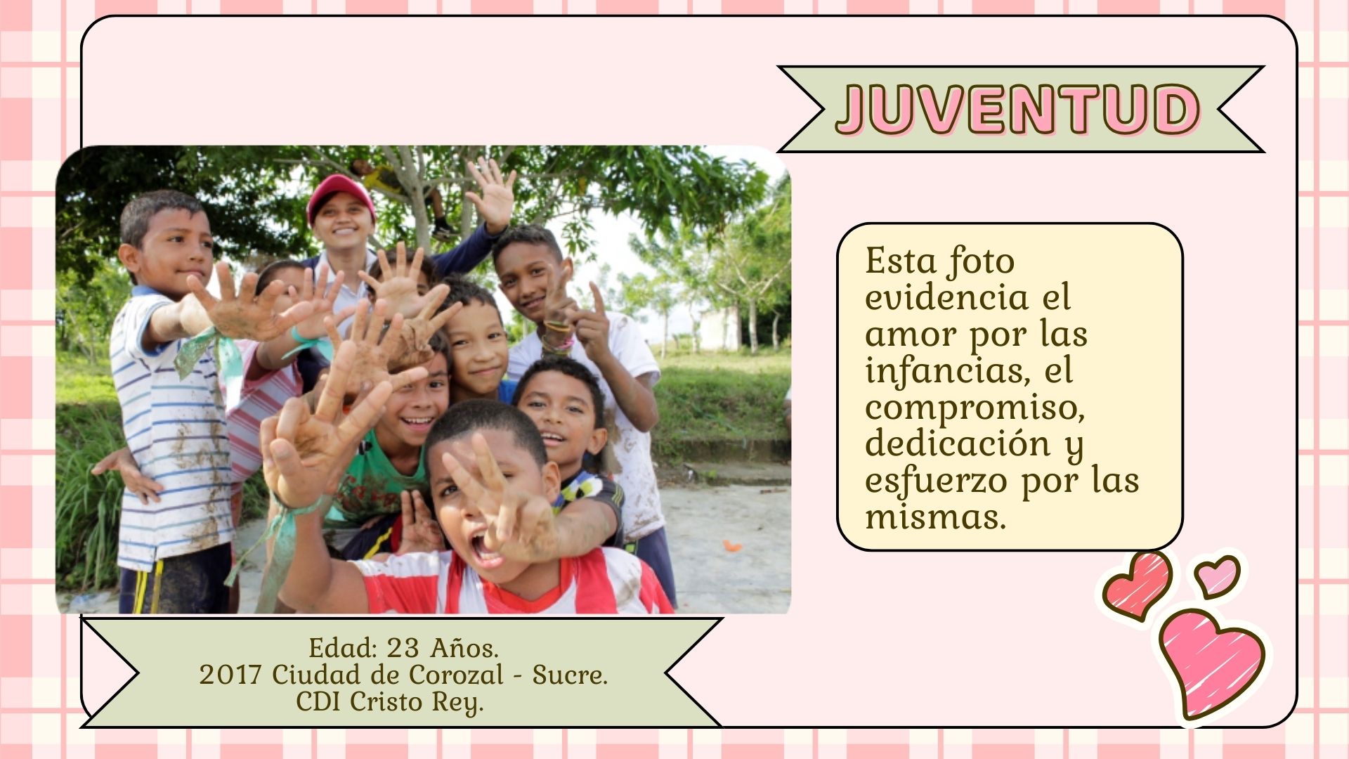 Observar las fotografías es revivir cada momento y experiencia vivida, es recordar desde la niñez que todo puede ser posible y que con el transcurrir del tiempo se construyen todas aquellas cosas con las que se soñó alcanzar un día. Este recorrido visual me ha permitido comprender la estrecha relación entre lo que soy como sujeto, la subjetividad de mi ser y mi identidad; además me ha facilitado entender como la interacción social ha sido un pilar fundamental en todos los procesos desde reconocerme como protagonista de mi propia historia hasta entender mi propia identidad desde la construcción social.
