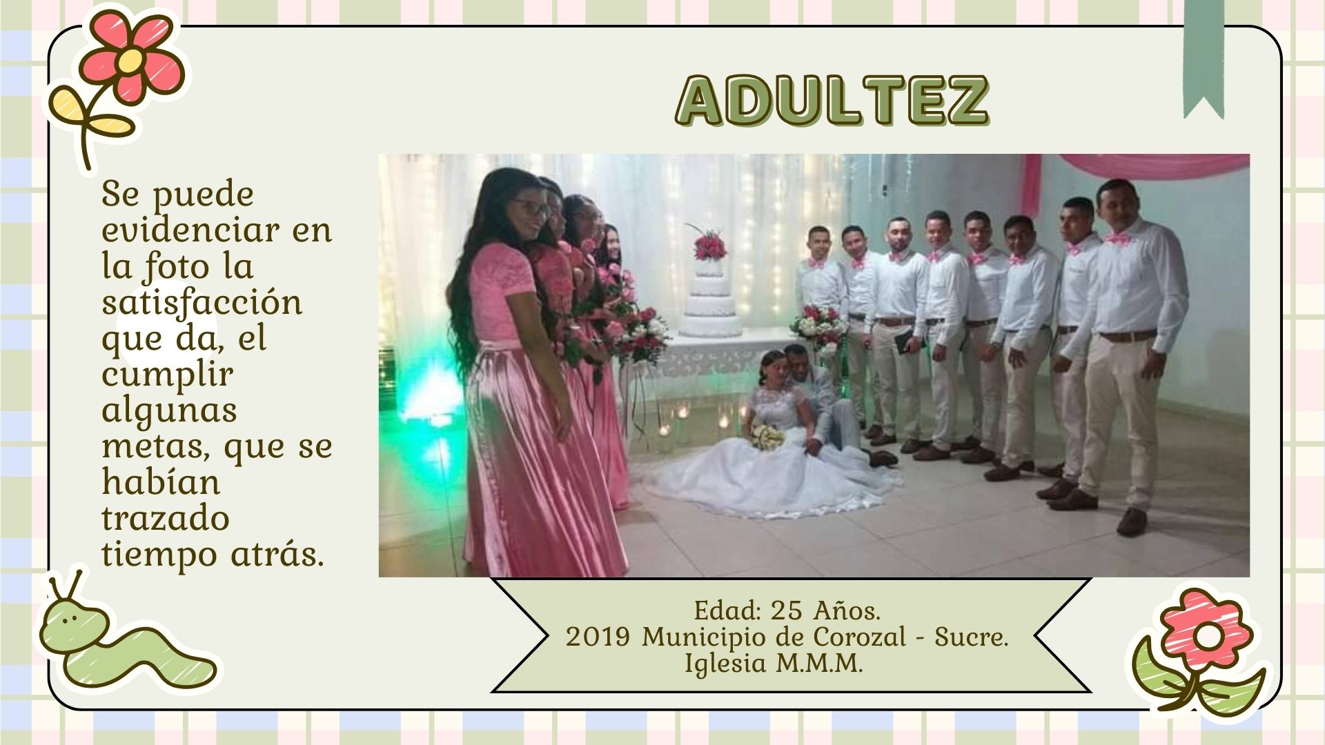 Desde que estaba en la etapa de la niñez, me imaginaba en un futuro ejerciendo la profesión docente, lo cual se puede decir que se está cumpliendo, en la adolescencia soñaba con visitar lugares nuevos, acompañada de personas que amo, lo cual puedo decir que se cumplieron muchos de ellos, en la edad de la juventud tenía muchos anhelos algunos se cumplieron otros se tuvieron que dejar a un lado, como el estudiar psicología; soñaba con tener una boda linda y una hermosa familia y en la actualidad es algo que se ha cumplido todavía faltan muchas metas por finiquitar como lo es el culminar la licenciatura, la especialización y estudiar una maestría, continuar con esa preparación profesional que es fundamental para crecer no solo profesionalmente, sino también como individuo y persona. Como lo menciona (Aguirre, 2000):